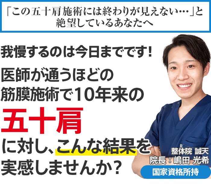 五十肩を根本改善したいなら明石市の整体院 誠天